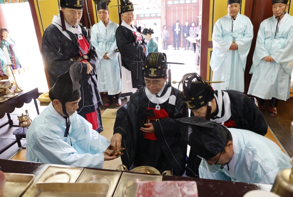 이어 공자, 안자, 증자, 자사, 맹자 등 5성위에 첫 술잔과 축문을 올리는 초헌례(初獻禮), 아헌례, 종헌례, 분헌례, 음복례, 망료례 등의 순으로 진행됐다.