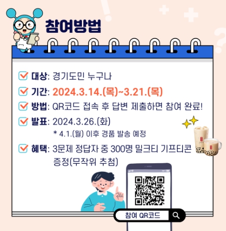 참여 방법은 큐알(QR)코드를 촬영해 사이트에 접속한 후 3개 문제의 퀴즈를 맞히면 된다. 퀴즈 정답자 중 무작위로 추첨해 300명에게 밀크티 기프티콘을 증정한다.