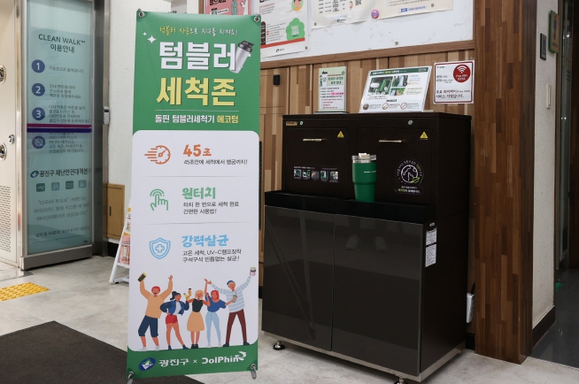 [뉴스서울] 광진구가 일회용 컵 사용을 줄이고 생활 속 탄소중립 실천에 앞장서고자, 청사 내에 텀블러 자동세척기를 설치했다.