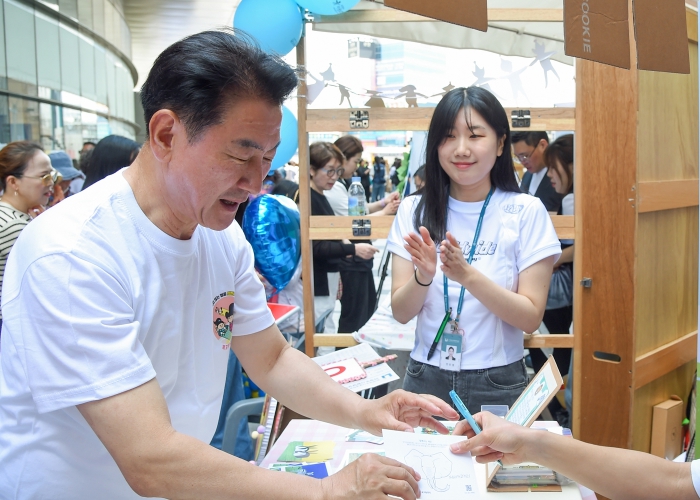 | ▲ 김동근 시장이 6월 1일 신세계백화점 의정부점 3층 광장에서 열린 복지뮤지엄에 행사에 참여하고 있다. |