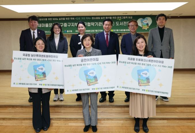[뉴스서울] 새마을문고 대구중구지부는 26일 중구청 대강당에서 탄소중립 관련 도서 100여 권을 업무 협약 어린이집 3개소에 전달했다.
