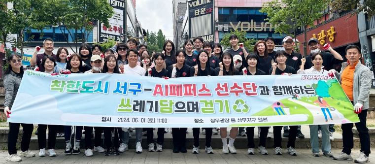 [뉴스서울] 광주광역시 서구와 페퍼저축은행 AI페퍼스는 지난 1일 서구의 대표상권인 상무광장 일대에서 ‘쓰담걷기’를 진행했다.