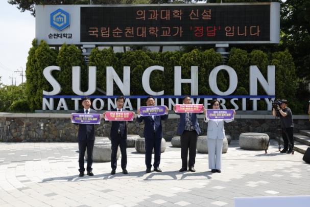 [뉴스서울] 전남 동부권 7개 시・군 의회(보성군의회, 고흥군의회, 구례군의회, 곡성군의회, 광양시의회, 순천시의회, 여수시의회)는 23일, 순천대학교 정문에 모여‘국립의과대학 순천 유치를 위한 공동성명서’를 발표했다.
