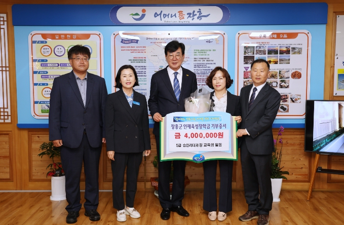 앞선 15일에는 장흥군청 5급 승진 리더과정 교육생 일동(장흥군청 보건소 위선주 과장, 이명숙 과장, 정종훈 장동면장, 농촌활력사업소 정익주 농촌활력팀장) 400만원, ㈜토우엔지니어링(대표 신정철) 300만원을 기부했다.
