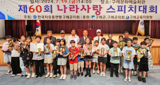 [뉴스서울] 한국자유총연맹 구례군지회는 지난 19일 구례문화예술회관에서 열린 '제60회 나라사랑 스피치대회'를 성황리에 마무리했다고 밝혔다.