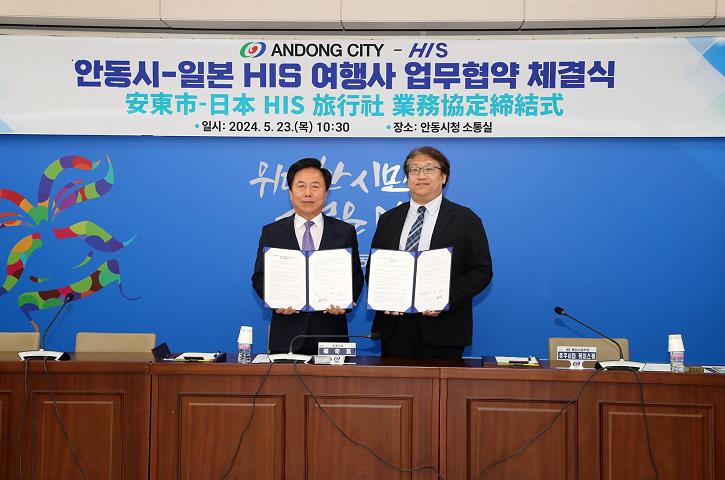 [뉴스서울] 안동시는 일본 대형여행사 HIS 여행사와 5월 23일 안동시청 소통실에서 안동관광상품 개발 및 출시를 위한 관광업무 협력 MOU를 체결했다.