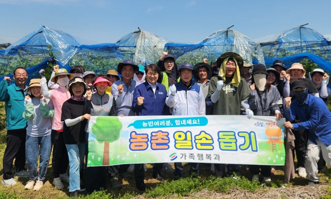 [뉴스서울] 영천시 가족행복과는 23일 농번기 일손부족으로 어려움을 겪고 있는 녹전동 소재 포도 재배 농가를 방문해 일손을 보탰다.