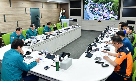 이날 훈련은 집중호우에 따른 산사태 경보 실제상황을 가정한 ▲긴급재난문자 발송 ▲상황 판단 회의 ▲주민 대피 명령 발령과 주민 대피 ▲현장 대응 ▲수습·복구 단계로 전개됐다.