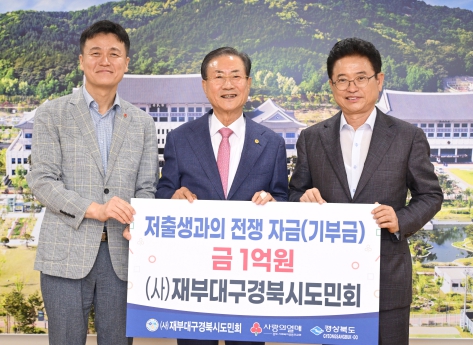 평소 지역발전과 고향 사랑 실천을 위해 적극 노력해 오고 있는 재부대구경북시도민회의 이번 성금 기부는 저출생 문제가 지역의 소멸을 넘어 국가의 존립이 걸린 심각한 상황임을 함께 공감하고, 경상북도의 저출생 극복 운동을 적극 지원하기 위해 마련됐다.