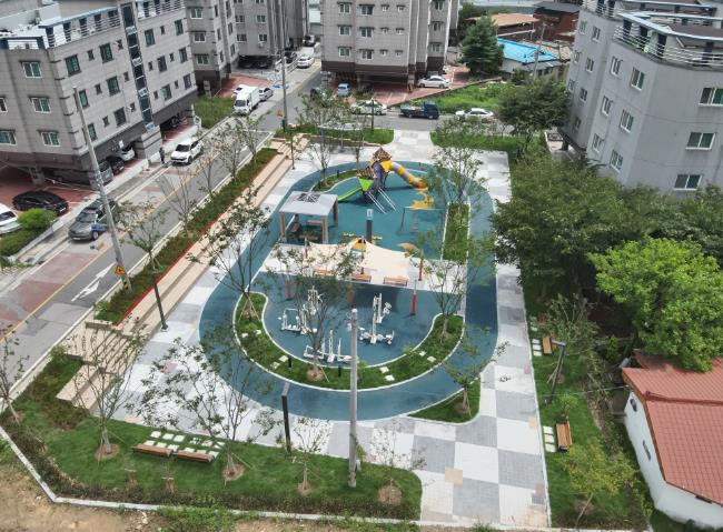 더불어 어르신을 위한 가벼운 운동을 할 수 있는 운동기구와 쉴 수 있는 파고라 등의 휴식 공간을 조성했다.