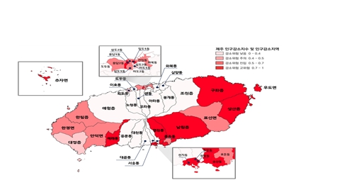 ▲ 제주지역균형발전지원센터 「제주 읍면동별 인구감소위험 분석」 |