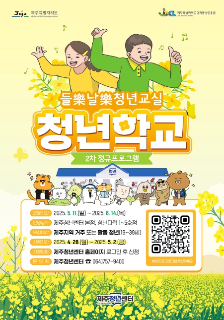 [뉴스서울] 제주특별자치도와 제주청년센터가 2025년 청년학교 2차 정규프로그램 참여자를 4월 28일 ~ 5월 2일까지 모집한다.