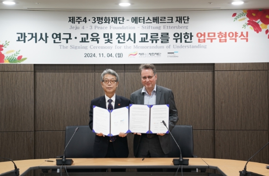 [뉴스서울] 제주4・3평화재단은 독일 과거사 및 민주주의 가치에 관한 연구, 전시, 교육 기관인 에터스베르크 재단(이사장 외르크 간첸뮐러 Jörg Ganzenmüller)과 2024년 11월 4일 업무협약을 체결했다고 밝혔다.