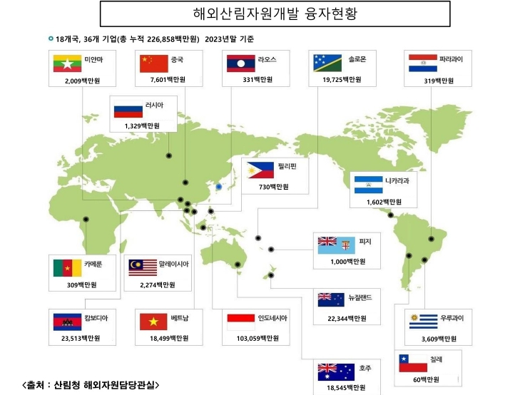 ▲ 산림청 해외산림자원개발 사업 융자현황(23년말기준) |