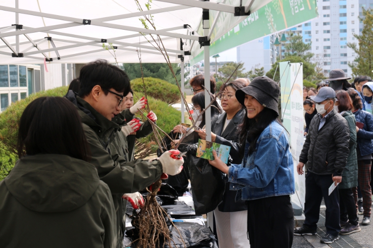 5일 오전 10시부터 대전시 서구 국립자연휴양림관리소 주차장 일원에서 진행된 이날 행사에는 지역주민 등 약 300여 명이 참여해 반려나무를 분양받았다.