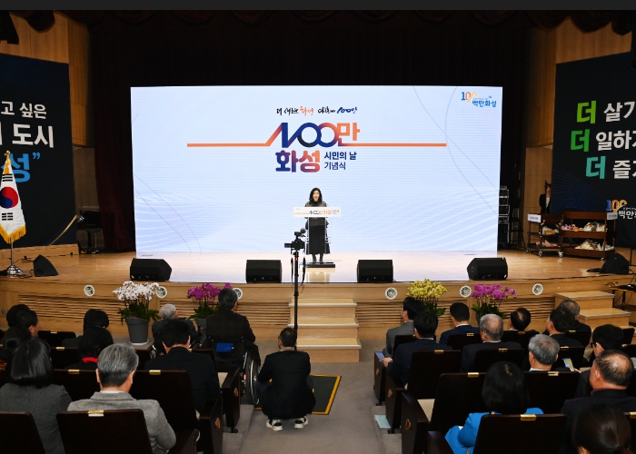 이번 기념식은 감사패(화성시 시정발전 공헌 6인)및 모범 시민 유공자(103인) 표창, 자랑스러운 화성인(영화‘시민덕희’실존인물) 시상에 이어 화성 특례시 홍보 영상 상영, 화성 시민의 노래 제창 순으로 진행됐다.