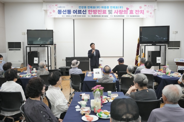 [뉴스서울] 지난 13일 서울 성북구 동선동주민센터 강당에서 동선동 어르신들을 위한 건강 한방진료와 효 잔치 행사가 열렸다. 동선번영회와 동선동주민센터가 협력해 저소득층 어르신 40명을 초청하는 자리를 마련했다.