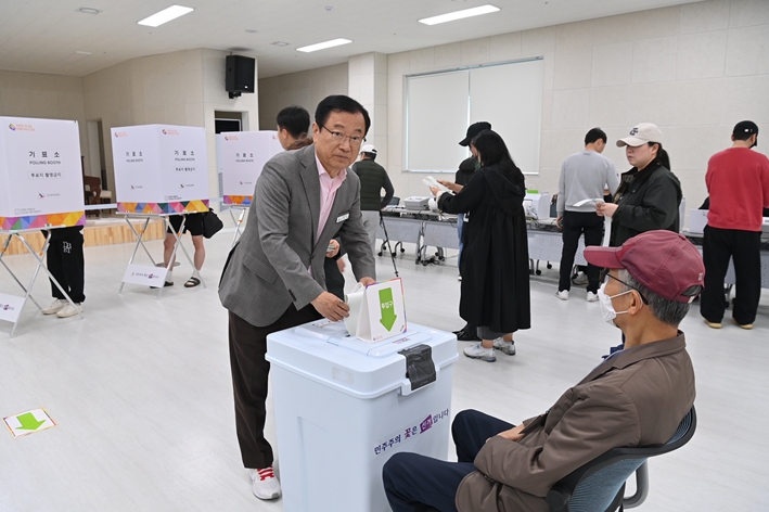 이 시장은 투표 후 투표사무에 임하고 있는 종사원들을 격려하며 “시민의 자유로운 투표를 위한 투표소 관리와 선거의 공정성을 해칠 수 있는 행위 등이 발생하지 않도록 만전을 기해줄 것”을 당부했다.