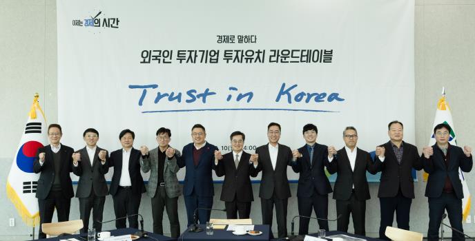 이날 경기도청에서 열린 ‘투자유치 라운드테이블’에는 신세계사이먼, 신세계프라퍼티, ESR켄달스퀘어, 스카이윅스 솔루션즈, ㈜아크레텍코리아, ㈜엠티어, 인터코스코리아, 한국로드, 한국후지필름일렉트로닉머티리얼즈㈜ 등 외국인투자기업 9개사가 참석했다. 이번 라운드테이블은 경기도에 총 2,462억 원의 투자를 계획하고 있는 6개사와 투자 이행중인 3개사가 김동연 지사와 차질없는 투자계획 이행과 적극적인 지원을 확인하는 자리가 됐다.