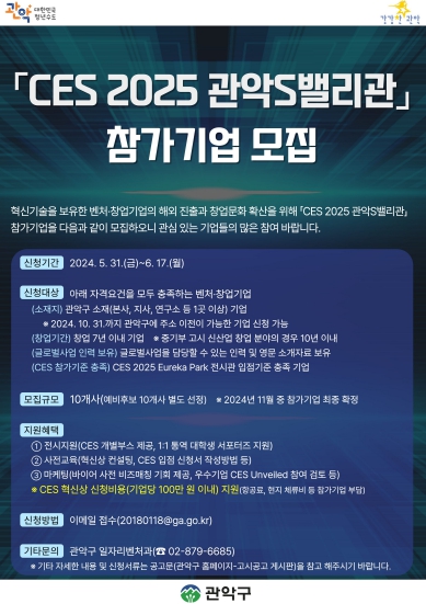 ▲ CES 2025 관악S밸리관 참가기업 모집 포스터 |