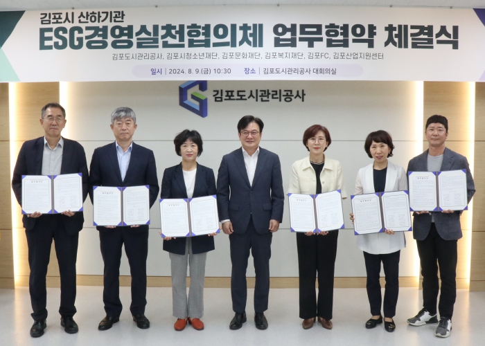 [뉴스서울] 민선8기 김포시가 시 산하 6개 공공기관이 시의 비전을 공유하고 같은 목표를 지향하고자 9일 ‘ESG경영실천협의체 협약’을 체결하고, 더 강화된 협력으로 김포시의 발전을 이끄는 데 뜻을 모았다고 밝혔다.