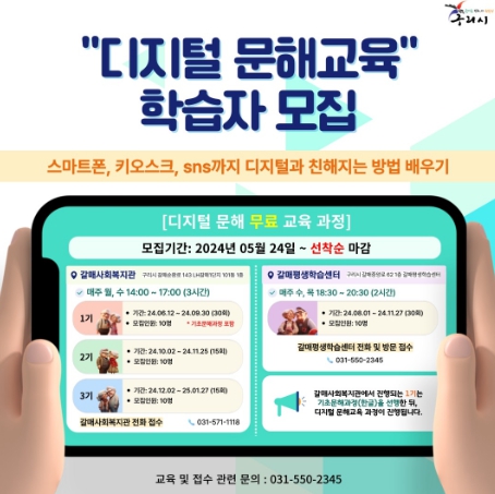 | ▲ 구리시, 2024년 디지털 문해교육 수강생 모집 |