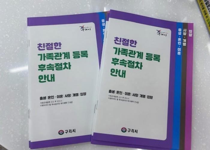 [뉴스서울] 구리시는 가족관계등록 신고(출생, 사망, 개명 등) 후 민원인이 반드시 이행해야 할 후속 절차가 수록된 '친절한 가족관계등록 후속절차 안내문'을 제작하고, 시청 종합민원실 및 각 동 행정복지센터 민원실에 비치해 시민 편의를 도모하고 있다.