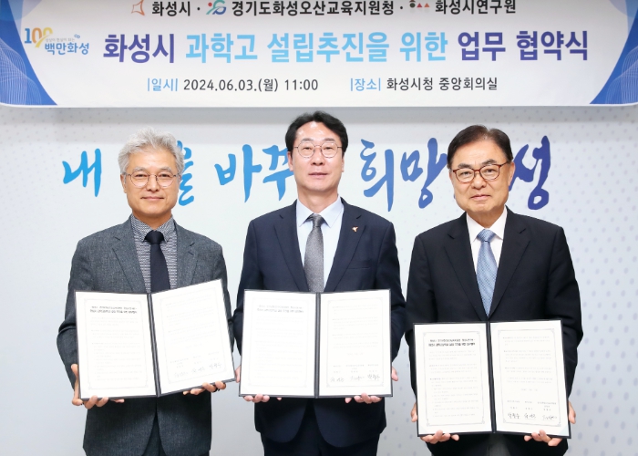 [뉴스서울] 화성시가 3일 시청 중앙회의실에서 화성오산교육지원청·화성시연구원과 ‘과학고 설립 추진을 위한 업무협약’을 체결했다.