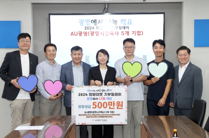 [뉴스서울] 광명시사회복지협의회가 6일 광명시청 영상회의실에서 광명희망나기운동사업의 ‘2024 희망이웃 기부릴레이’ 희망성금 전달식을 개최해 AU광명(광명을 사랑하며 밝게 만드는 모임)이 성금 500만 원을 전달했다.
