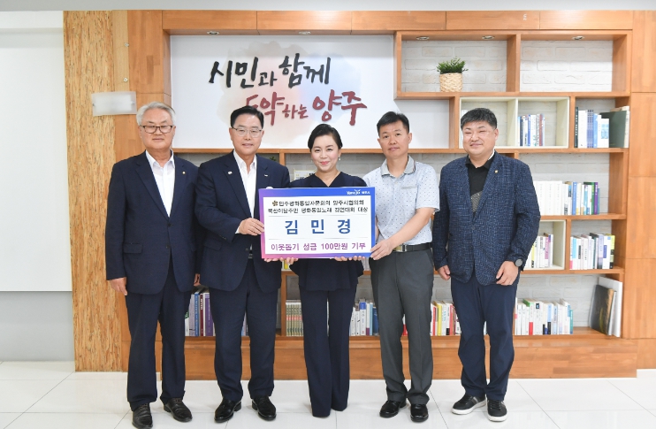 시에 따르면 이번 전달식 및 표창 수여식에는 강수현 양주시장, 김민경 씨, 이상원 민주평화통일자문회의 양주시협의회장을 비롯해 관계자 등 4명이 참석했으며 성금은 관내 취약계층에 전달될 예정이다.