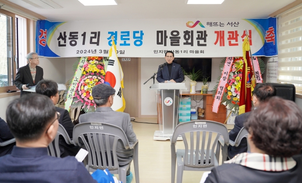 [뉴스서울] 충남 서산시가 20일 인지면 산동1리 경로당 개관식을 개최했다고 밝혔다.