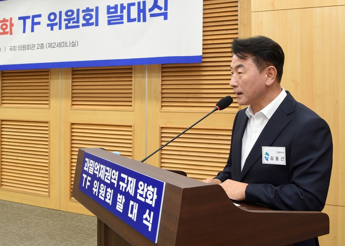 | ▲ 김동근 시장이 7월 10일 ‘과밀억제권역 규제 완화 TF 위원회 발대식 및 국회 토론회’에서 TF 위원회 구성배경 및 비전에 대한 제안설명을 하고 있다. |