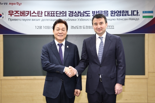 [뉴스서울] 경상남도는 10일 오전 도청에서 진행된 우즈베키스탄 고위급 대표단 접견에서 잠시드 압두하키모비치 호자예프(Jamshid Abduxakimovich Khodjaev) 우즈벡 경제부총리의 공동 산업단지 조성 제안에 ‘실무 협의 추진’으로 화답했다.