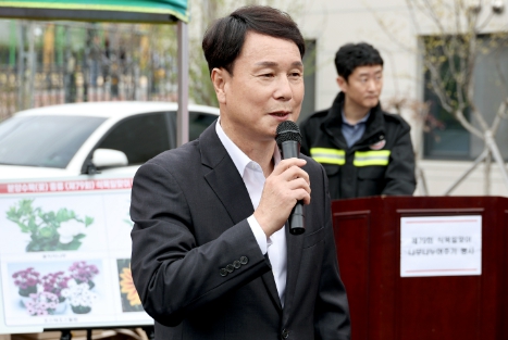 [뉴스서울] 대전시의회 이상래 의장은 4일 동구 성남동 다목적체육관에서 열린‘동구 제79회 식목일 맞이 나무 나누어주기 행사’에 참석해 박희조 동구청장과 인사를 나누고, 관계자들을 격려했다.