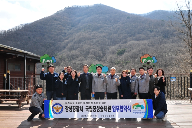 [뉴스서울] 장성경찰서는 3월 20일 산림청 국립장성숲체원과 경찰관 자존감을 높이는 복지환경 조성을 위한'정성치안 업무협약식'을 체결했다.