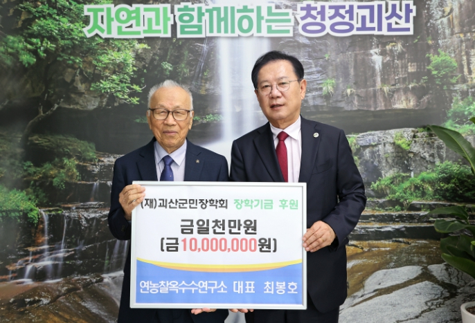 ▲ 최봉호 박사, 괴산군민장학회에 장학기금 전달 |