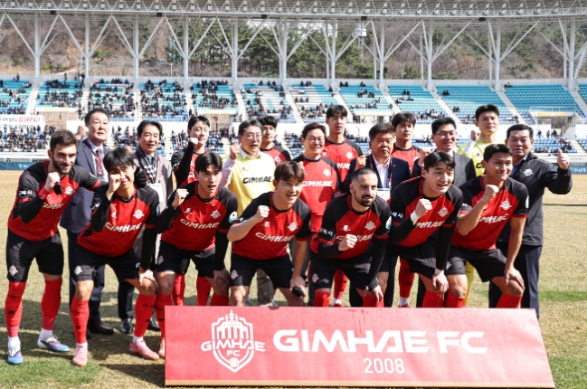 [뉴스서울] 경상남도는 28일 오후 김해종합운동장에서 열린 김해FC와 안산 그리너스의 홈 개막전을 찾아 김해FC의 프로리그 첫 공식 데뷔전을 축하하고 선수단을 격려했다.