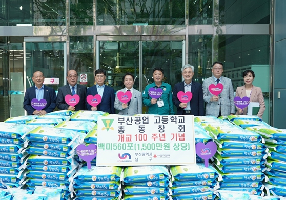 [뉴스서울] 부산공업고등학교 총동창회에서는 지난 21일 부산광역시 남구에 개교 100주년을 기념하여 축하화환 대신 받은 쌀(10kg) 560포를 기부했다.