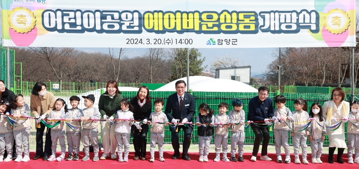 이날 개장식에는 진병영 함양군수, 박용운 군의회 의장, 한상현 도의원, 관내 어린이집 원아 등 100여 명이 참석하여 에어바운싱돔 개장을 축하했다.