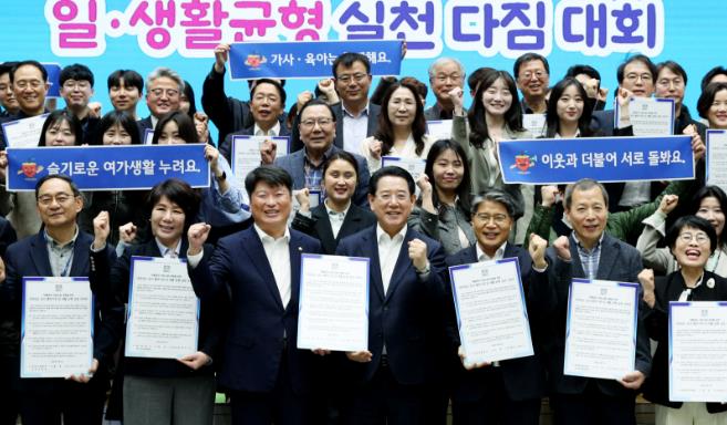 [뉴스서울] 전라남도는 5일 도청 왕인실에서 ‘저출생과 지방소멸 극복, 일·생활균형이 답이다’라는 슬로건으로 도 공사·출연기관 일·생활균형 실천 다짐대회를 개최, 일과 생활이 균형을 이루는 직장문화 확산에 함께하기로 했다.