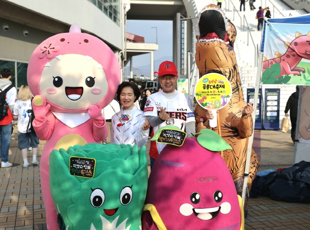 [뉴스서울] 지난 5일 광주챔피언스필드 야구장에서 진행된 기아타이거즈와 삼성라이온스 경기가‘해남군의 날’네이밍데이로 열렸다.