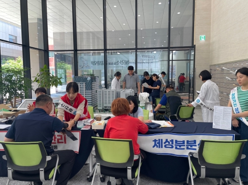 이날 하남지식산업센터에 차린 상생보건소에선 산단 노동자, 인근 직장인 등을 대상으로 혈압, 혈당, 체성분 분석 등 기초 검사와 만성질환 예방관리, 근골격계 예방 테이프 감기(테이핑), 금연 상담, 비만 예방 및 절주 등 다양한 건강서비스를 제공했다.
