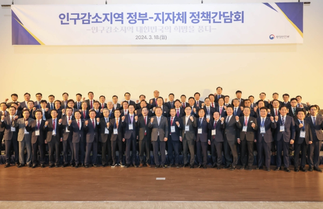 18일 정부세종청사에서 철원군을 비롯한 인구감소지역 지방자치단체장들이 한자리에 모여 인구감소를 막기 위한 대응책을 모색하는 간담회가 열렸다.
