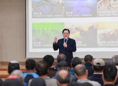 정책 토크에서는 역점 사업인 해양치유산업, 해양바이오산업, 해양 웰니스 관광도시 조성과 기후변화 대응 지속 가능한 농수축산업 육성 방안에 대해 설명하고, 군민 건의 사항을 청취하는 시간을 가졌다.