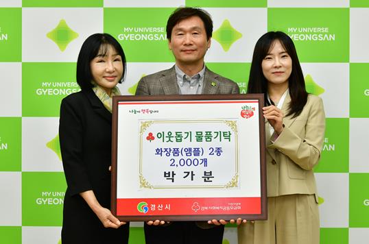 [뉴스서울] 화장품기업 박가분(대표 이가은)은 8일 경산시청을 방문해 취약계층을 위해 전달해 달라며 기초화장품(앰플) 2천 개(7천만원 상당)를 기탁했다.