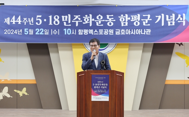 [뉴스서울] 전남 함평군이 지난 22일 엑스포공원 금호아시아나관에서 함평 5‧18민주화운동 제44주년 기념식을 개최했다.