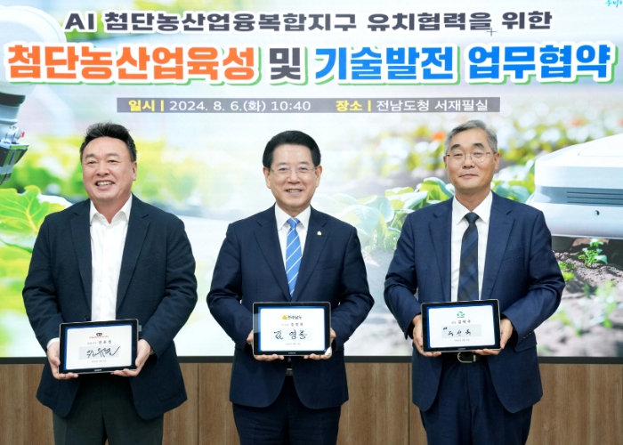 [뉴스서울] 전라남도는 6일 도청 서재필실에서 ㈜대동, (사)한국농업기계학회와 인공지능(AI) 첨단농산업융복합지구 유치를 위한 첨단농산업 육성·기술발전 업무협약을 했다.