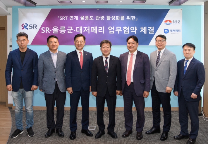 [뉴스서울] 울릉군과 ㈜SR, ㈜대저페리 3자 간 업무제휴 협약이 6월 12일 오후 2시 서울특별시 강남구 수서동 수서역 VIP 회의실에서 체결됐다.
