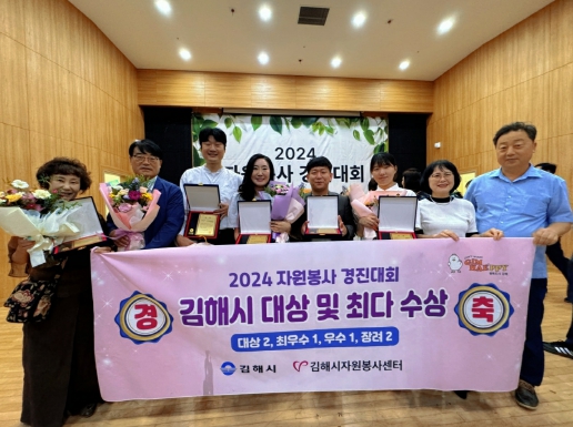 [뉴스서울] 김해시는 '2024 자원봉사 경진대회' 시상식에서 총 6팀(대상 2, 최우수1, 우수1, 장려 2) 수상하며 도내 시‧군 중 최다 수상과 대상의 영애를 안았다고 9일 밝혔다.