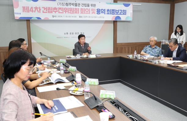 이범석 청주시장 및 박물관 건립추진위원회 위원 10여명이 참석한 가운데 열린 이날 회의는 용역을 맡은 (재)한국자치경제연구원의 최종 보고에 이어 종합토론, 건립추진위원회 회의 순으로 진행됐다.